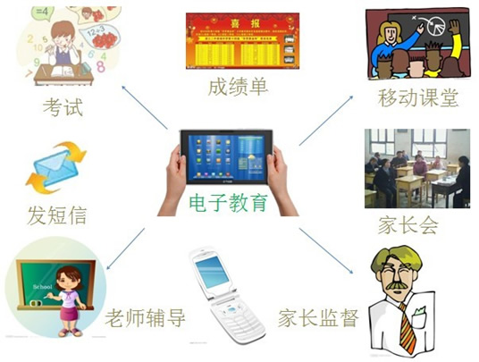 云教育平台依托目前比较成熟的无线移动网络、国际互联网以及多媒体技术,学生和教师使用移动设备(如IPAD等)通过移动教学服务器实现交互式教学活动。 通过移动教育系统把学生、教师、家长和教育资源有机结合起来。